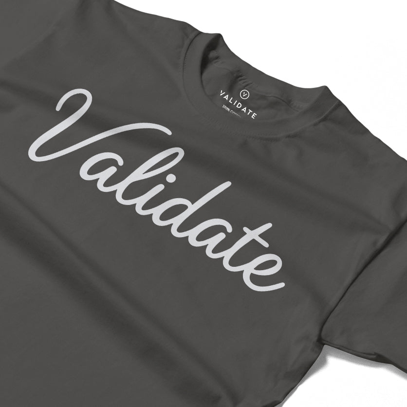 VALIDATE SCRIPT WOMENS T-SHIRT CHARCOAL